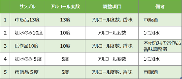 各サンプル飲用後に「おいしさ」「飲みやすさ」「アルコール度数の感じ方」、試験終了後に「好みの順位」についてアンケートで回答を得ました。