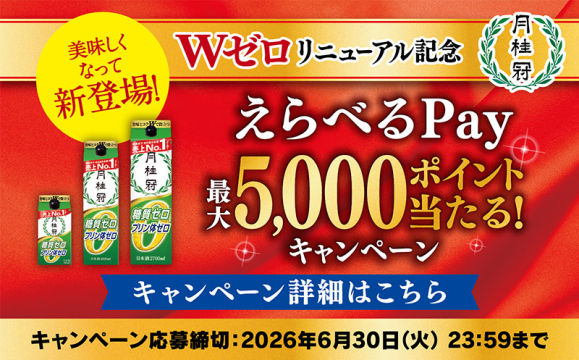 月桂冠株式会社(社長・大倉治彦、本社・京都市伏見区)は、月桂冠「糖質・プリン体Wゼロ」リニューアルを記念し、「Wゼロリニューアル記念 「えらべるPayⓇ」最大で5,000ポイント当たる!キャンペーン」を2026年3月23日(月)から2026年6月30日(火)まで実施します。「えらべるPayⓇ」5,000ポイントを抽選で50名様に、「えらべるPayⓇ」500ポイントを抽選で450名様に、合計500名様に進呈します。